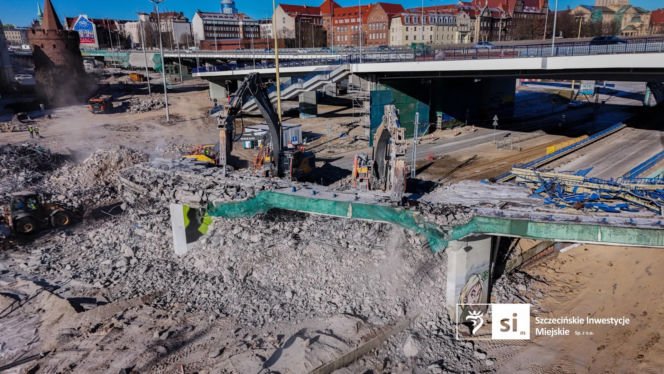 Postępy prac przy wyburzaniu łącznicy Trasy Zamkowej