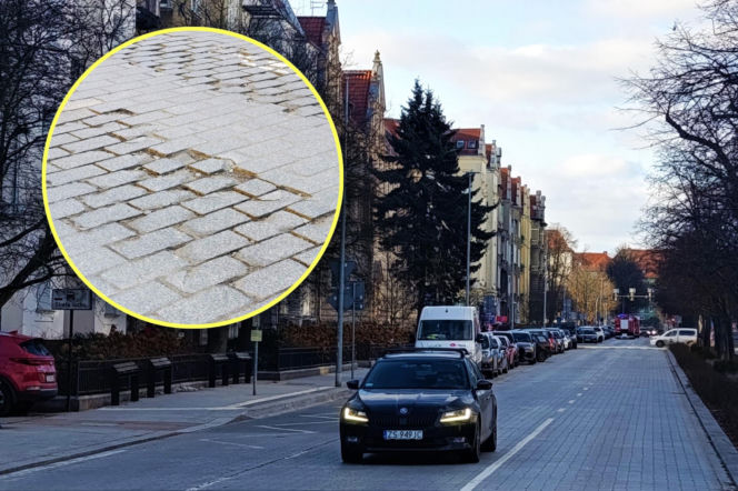 Zniszczony bruk na Al. Jana Pawła II w Sczecinie