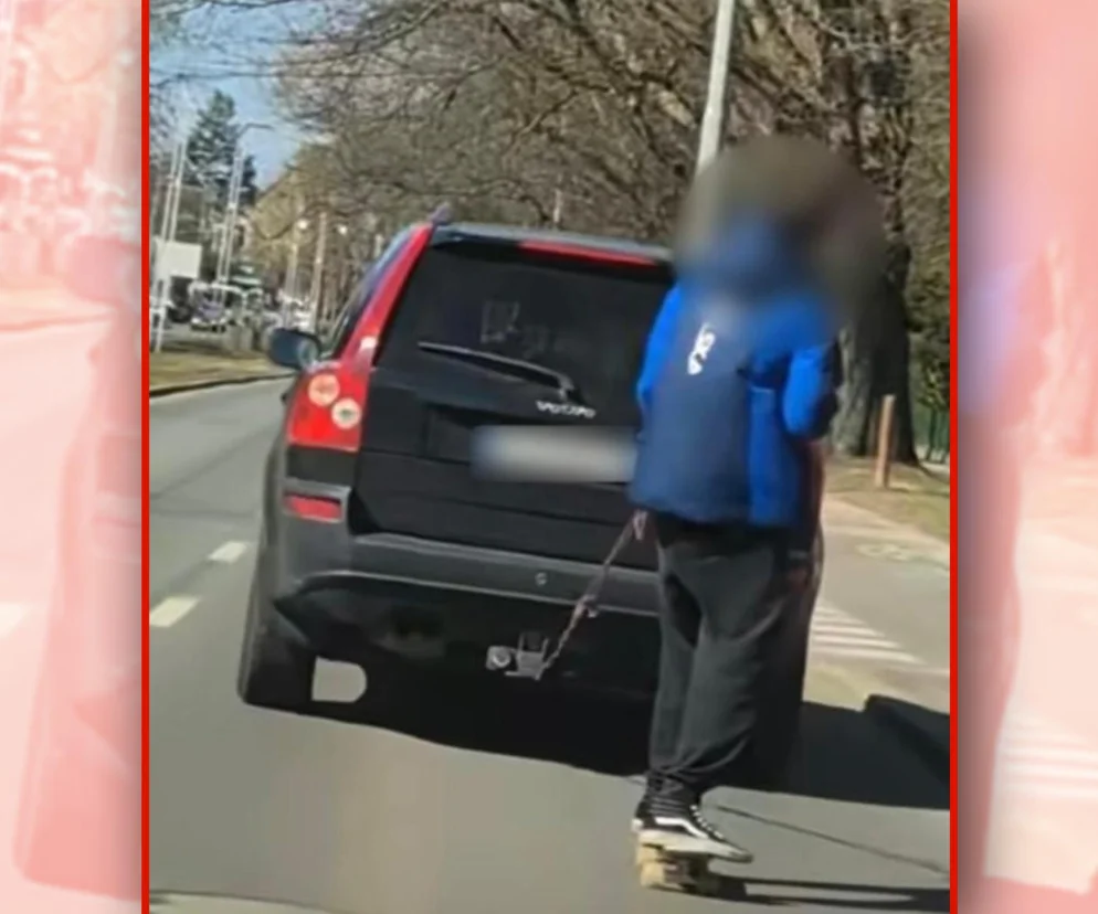 W internecie pojawiło się nagranie, które szybko zdobyło popularność. Widać na nim osobowe volvo poruszające się Aleją Wojska Polskiego, do którego na linie holowniczej podpięty jest mężczyzna na deskorolce. Samochód jechał w normalnym ruchu ulicznym, a kobieta siedząca za kółkiem wcale nie zwalniała.