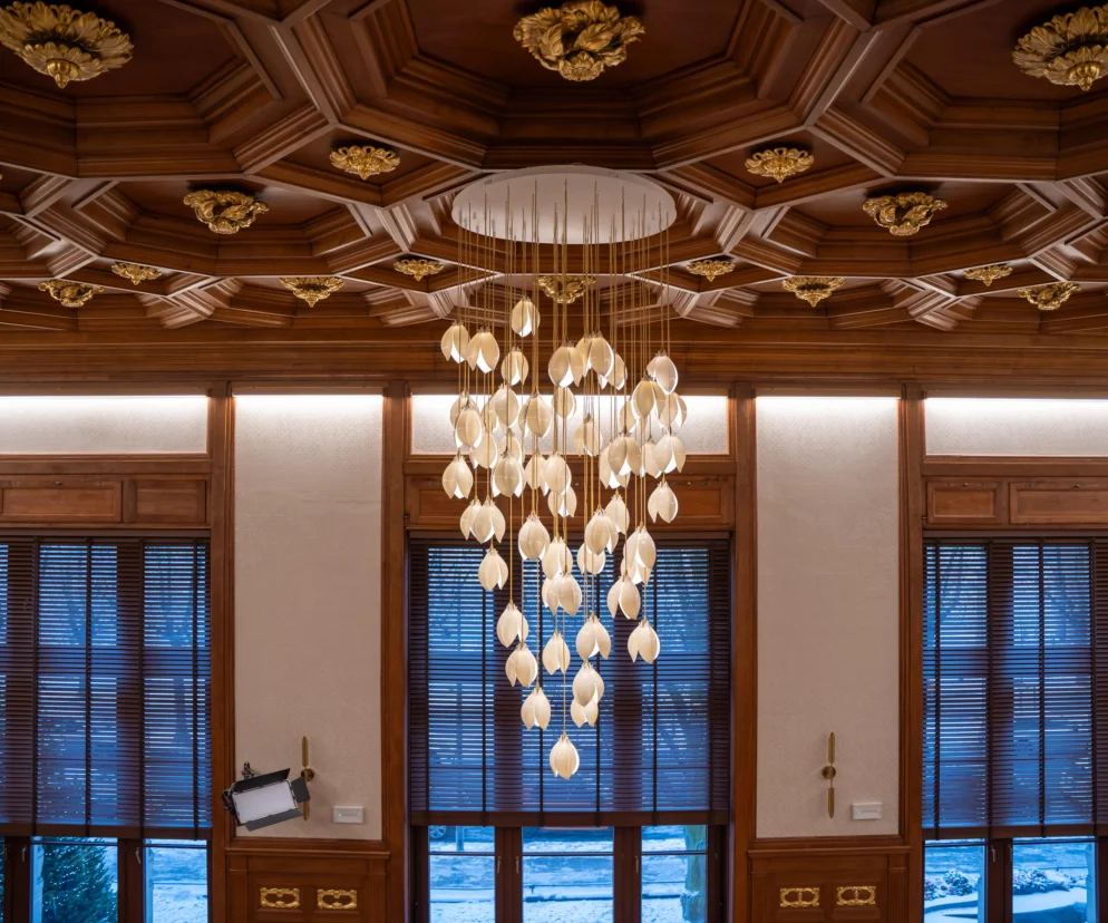 To co od razu przykuwa wzrok w odrestaurowanej sali to nowe oświetlenie – podkreślono nim ozdobne ościeżnice, balkonową galerię i ściany. Pod sufitem zawisła wielka lampa z 55 punktami świetlnymi skrytymi w kloszach przypominających kwiaty.